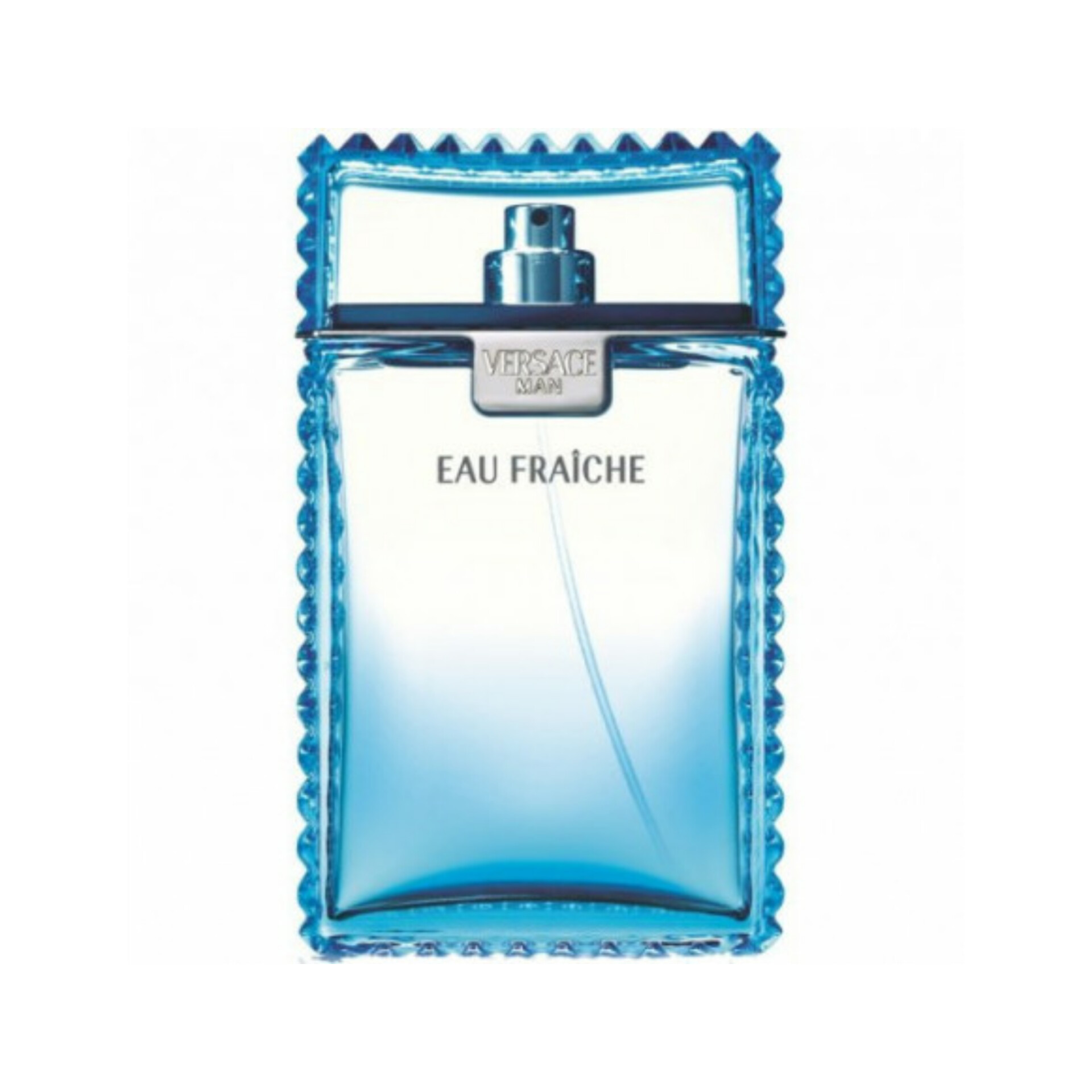 روی بطری شفاف این عطر، نام Eau Fraiche با رنگ تیره به چشم میخورد. مایع بیرنگ درون بطری از روی شیشهی آبی آن بهخوبی دیده میشود. در کنارههای بطری، برجستگیهای ظریف و هنرمندانهای کار شده که زیبایی آن را دوچندان میکند. در بالای نام Eau Fraiche در یک کادر فلزی، نشان Versace Man بهخوبی حک شده و خودنمایی میکند.